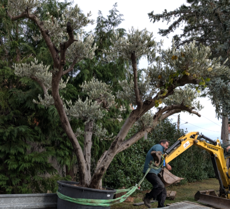 Pour les sujets de grande taille nécessitant des moyens adaptés, nous intervenons avec le matériel approprié, notamment mini-pelle et solutions de transport spécifiques, afin de garantir une mise en place sécurisée et soignée.